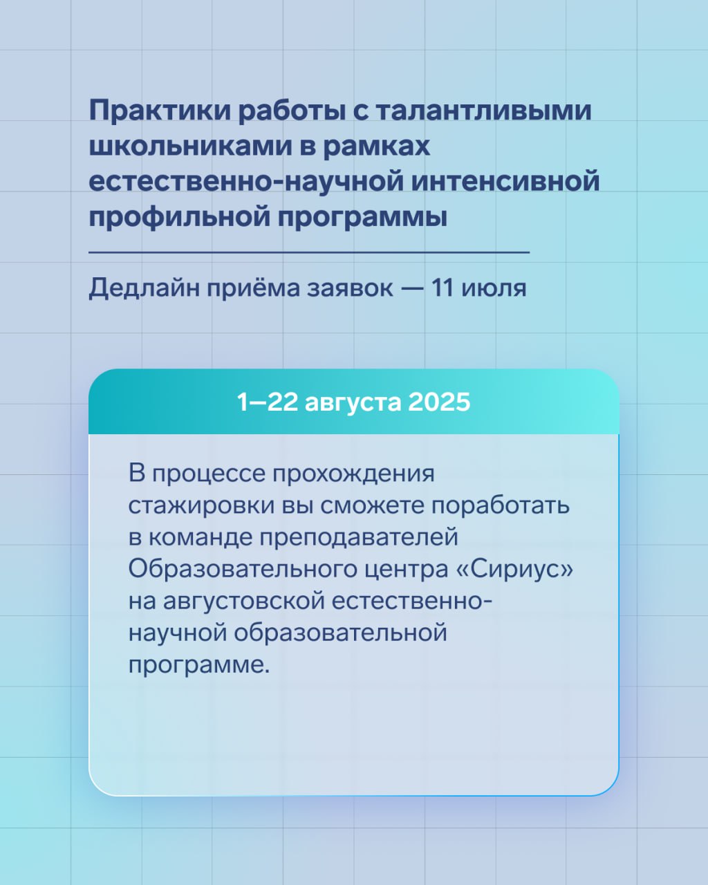 🗓 1–22 августа | Приём заявок — до 11 июля