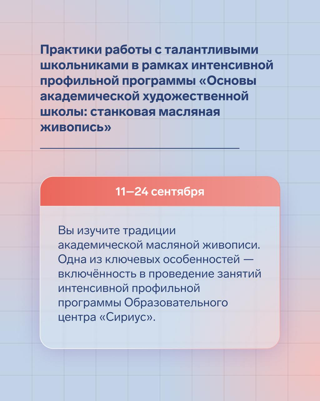 📍 Практики работы с талантливыми школьниками в рамках интенсивной профильной программы «Основы академической художественной школы: станковая масляная живопись»